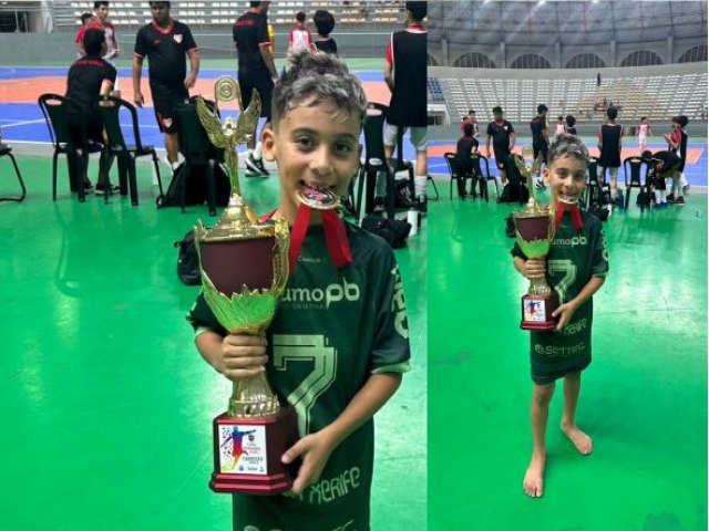 O jovem atleta Heitor Felipe, de 9 anos, conquistou de forma invicta a Copa Paraíba 2025 de Futsal, na categoria Sub-09, uma das competições mais disputadas das categorias de base do estado. Natural de Caturité, Heitor representou o Clube Campestre, de Campina Grande, demonstrando grande habilidade, velocidade e destaque técnico durante toda a competição.